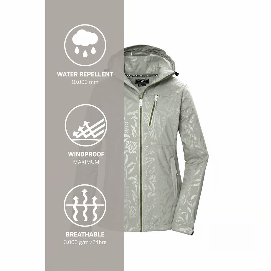 Dámská bunda KILLTEC - KOS 122 WMN SFTSHLL JCKT FLORAL - 42846 (Light Sage, 40)