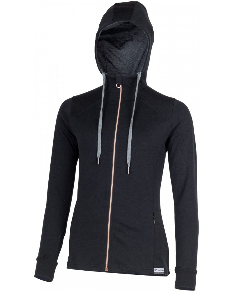 Dámská merino mikina LASTING Karmina je z dvouvrstvého hladkého úpletu z nejjemnějšího vlákna, což při nošení způsobuje, že materiál neškrábe a nesvědí. Ploché švy zajišťují komfort při nošení. Vlna je vysoce antibakteriální a zajišťuje odvod vlhkosti, proto se i při zpocení budete cítit pořád v suchu. Doporučujeme jako střední a svrchní vrstvu při sportech i běžném nošení.