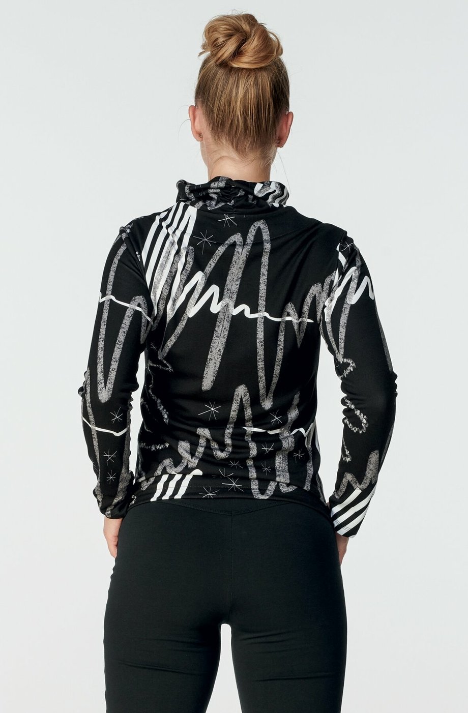 Celopropínací dámská mikina DRAPS s větším řaseným stojáčkem a kapsami v bočním švu.