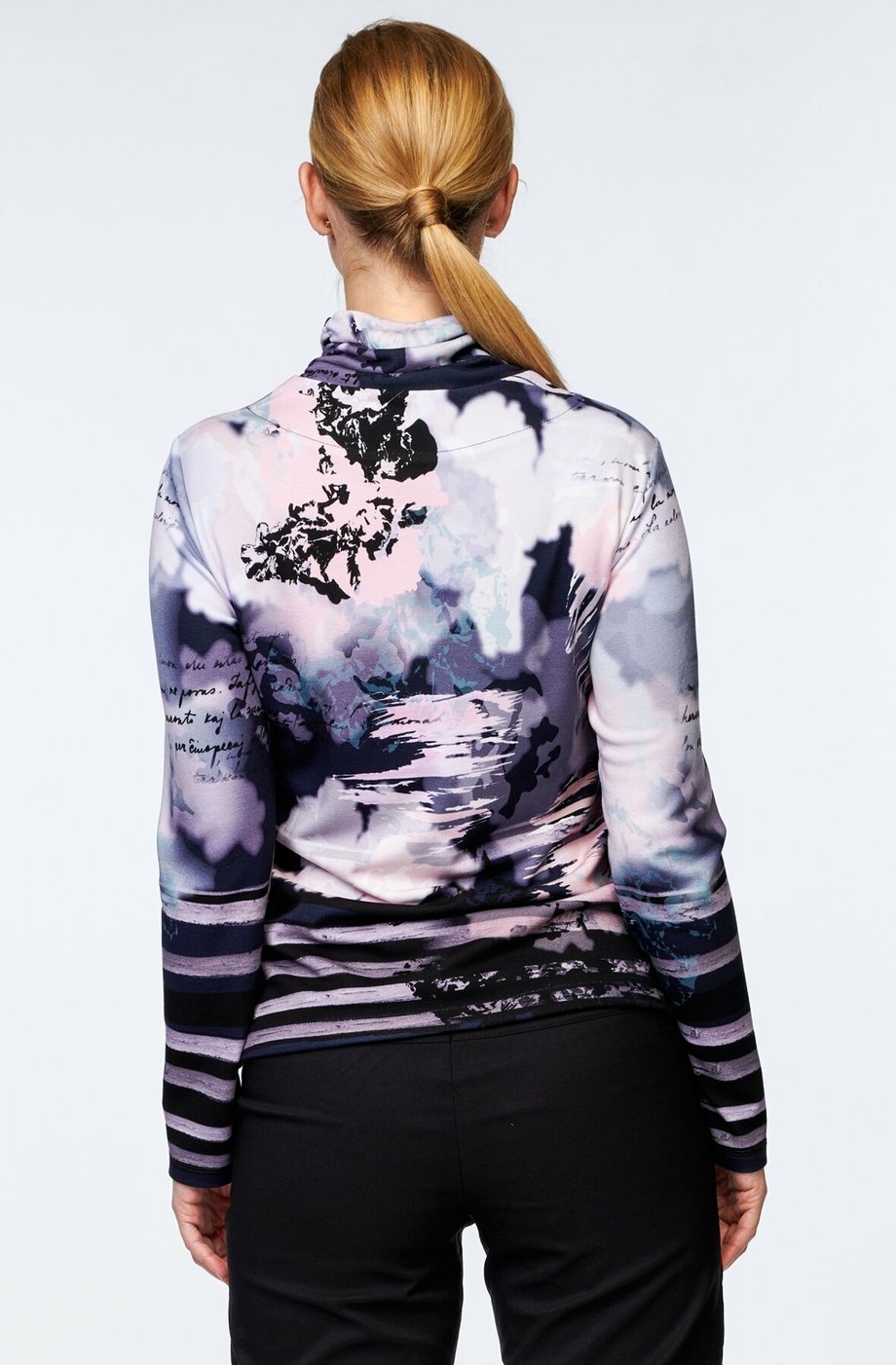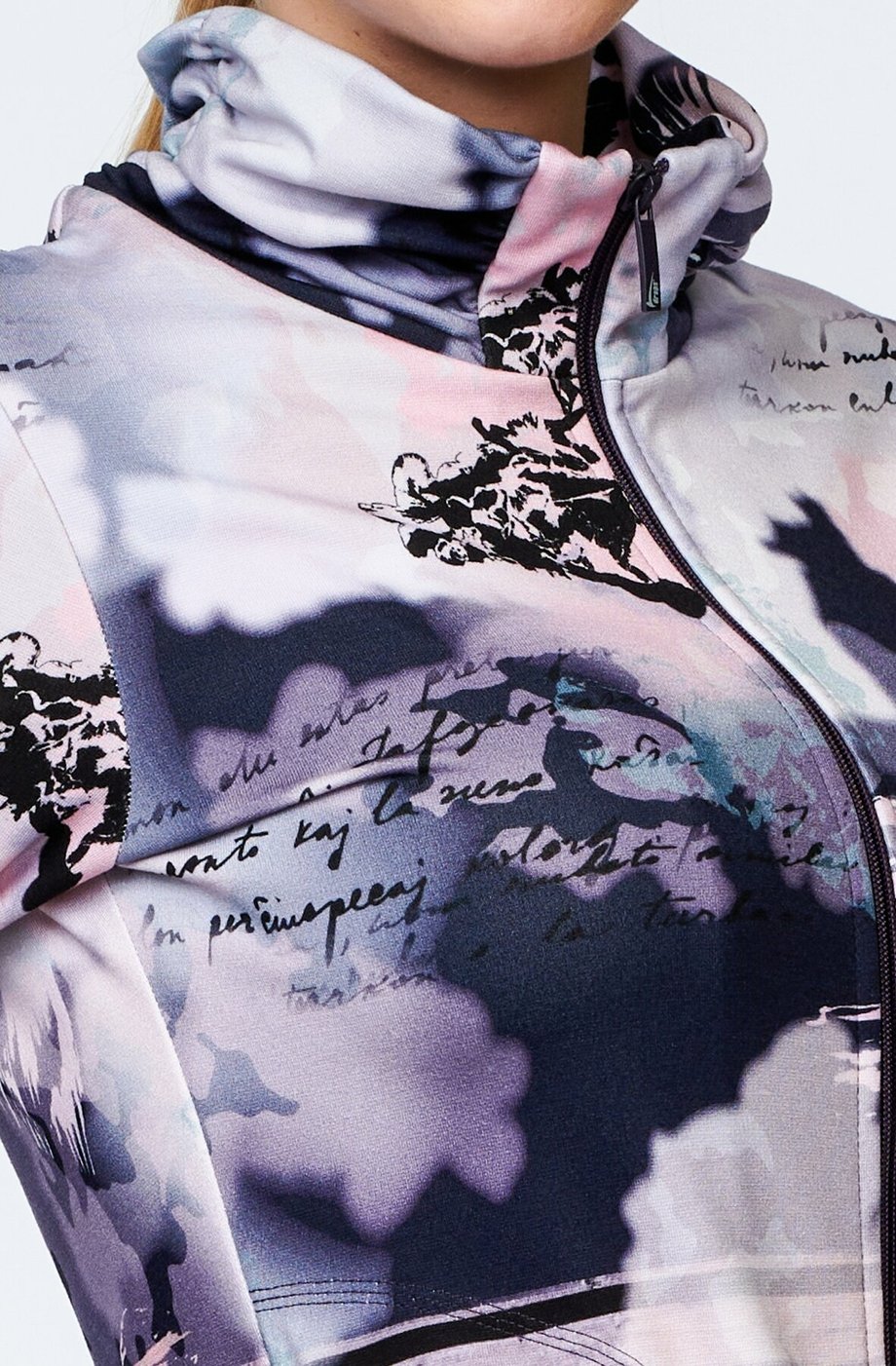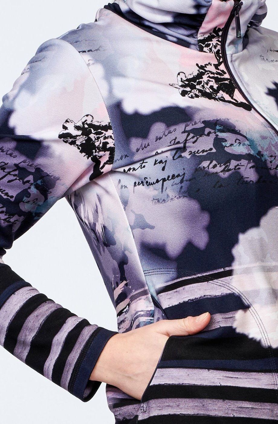 Celopropínací dámská mikina DRAPS s větším řaseným stojáčkem a kapsami v bočním švu.