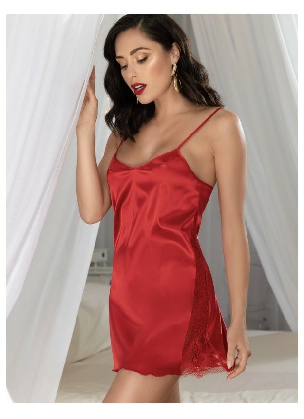 Dámská saténová noční košile LEILIEVE na tenká stavitelná ramínka. Košile je na bocích zdobená krajkovou vsadkou.