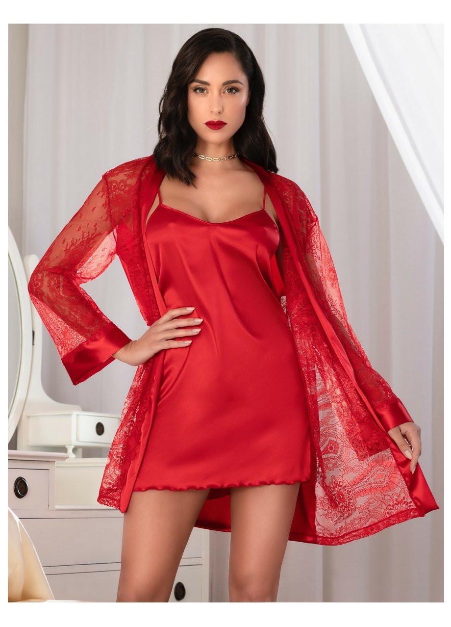 Dámská saténová noční košile LEILIEVE na tenká stavitelná ramínka. Košile je na bocích zdobená krajkovou vsadkou.