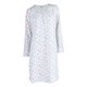 Dámská bavlněná noční košile PLEAS s dlouhým rukávem, kulatým výstřihem a délkou ke kolenům. Ve výstřihu je noční košile lehce nařasená.