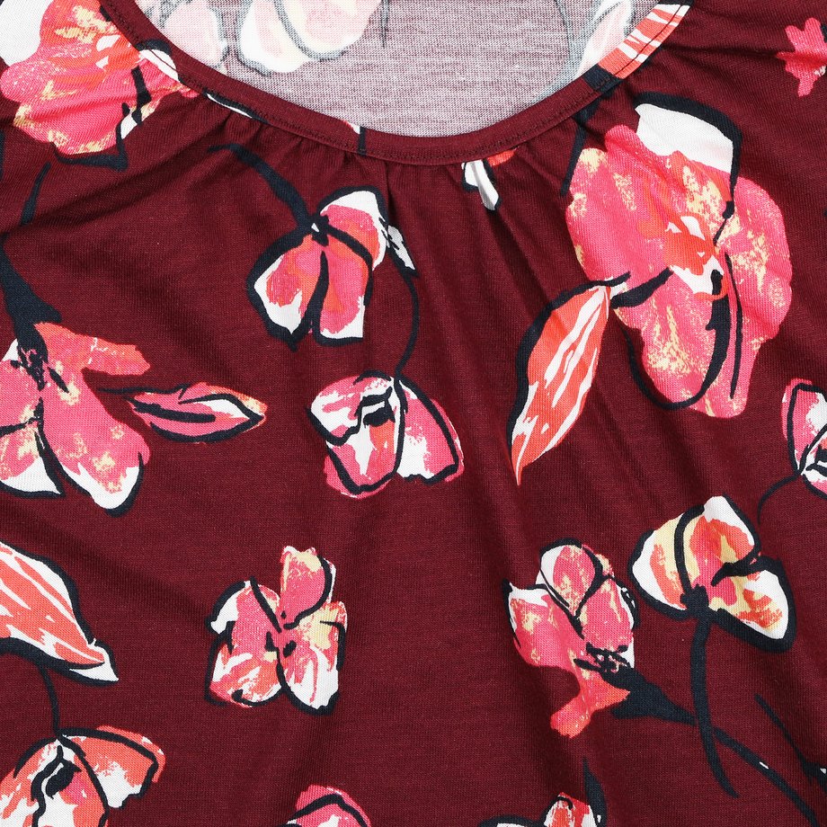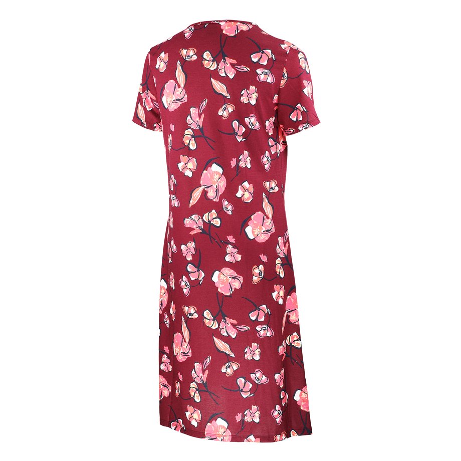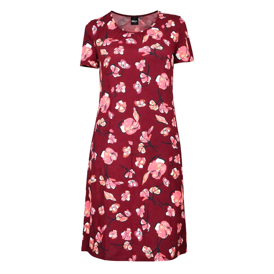 Dámská pohodlná bavlněná noční košile s modalem PLEAS volnějšího střihu s krátkým rukávem a kulatým výstřihem. Ve výstřihu je noční košile lehce nařasená.