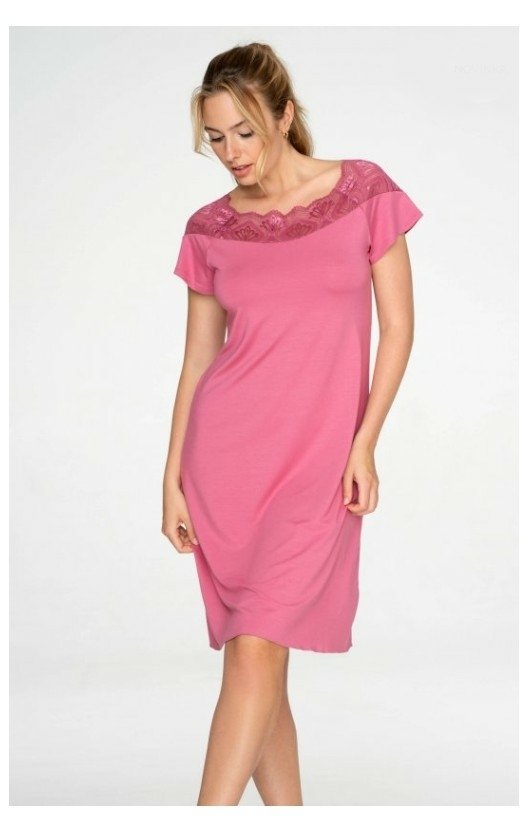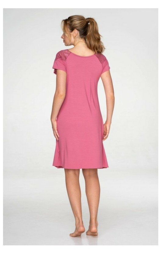 Dámská noční košile TIMO - Hyacinth s krátkým rukávem zdobená u výstřihu krásnou květinovou krajkou. Košile je v délce nad kolena.