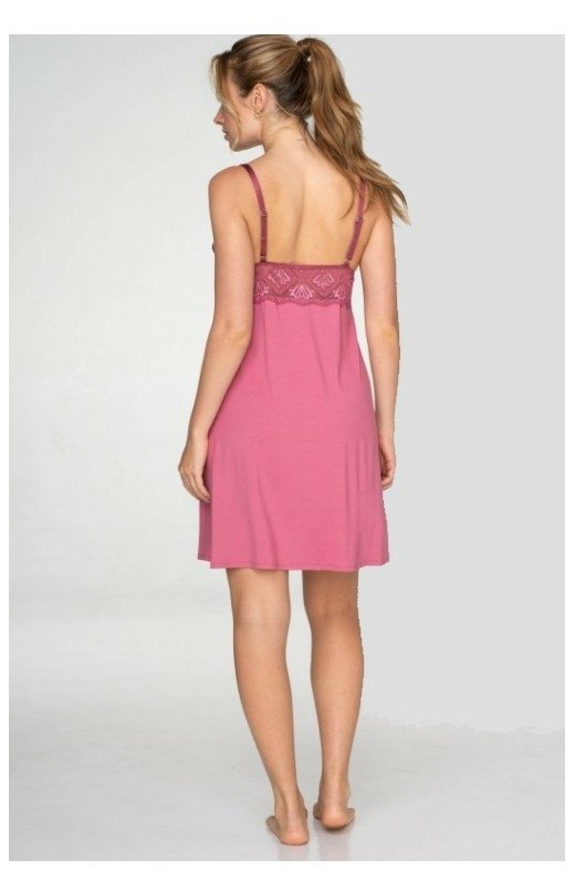 Dámská noční košile TIMO - Hyacinth na tenká stavitelná ramínka bohatě zdobená krásnou květinovou krajkou na předním i zadním díle. Košile je v délce nad kolena.