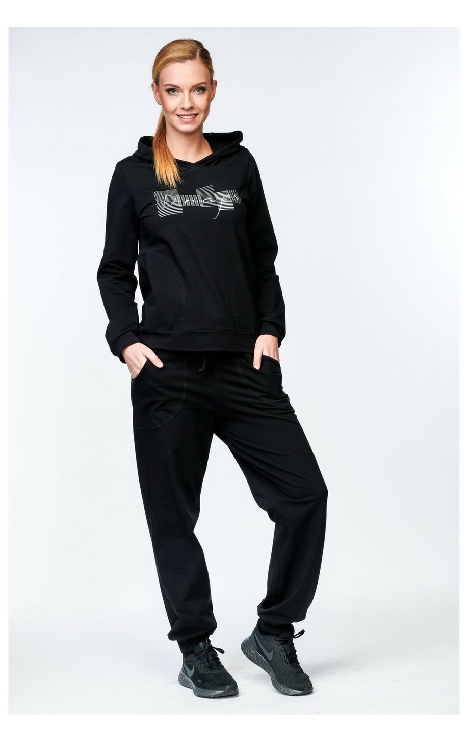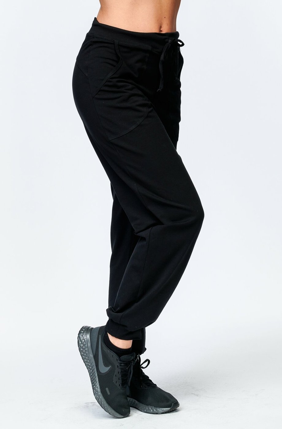 Dámské dlouhé volnější kalhoty DRAPS s vyšším sedem a kapsami pro vaše pohodlí doma i na cestách. Nohavice jsou ukončeny do lemu a v pase je šňůrka na stažení.
