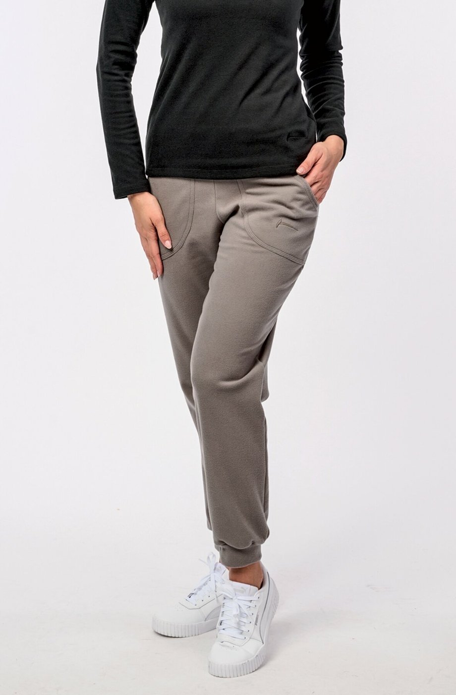 Dámské dlouhé fleecové kalhoty DRAPS s kapsami a nohavicemi ukončenými do lemu pro vaše pohodlí doma i na cestách.