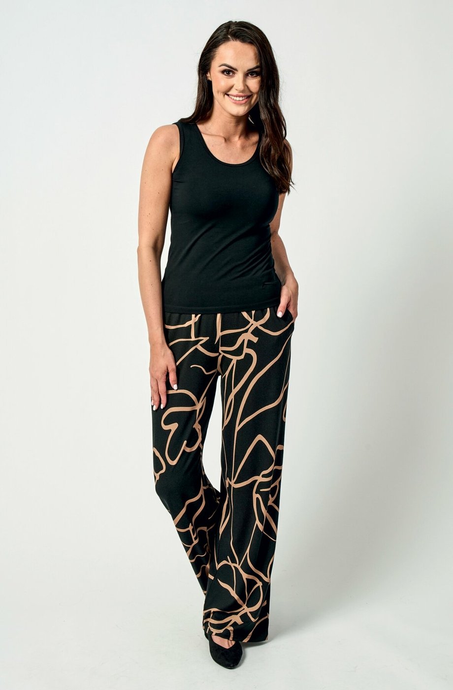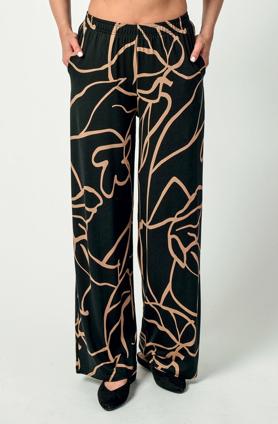Dámské dlouhé kalhoty DRAPS širokého střihu s kapsami a gumou v pase pro vaše pohodlí doma i na cestách.