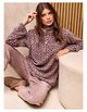 Dámské dlouhé hřejivé pyžamo nebo domácí komplet LORMAR - Day se stojáčkem a rozepínací légou s jemným zvířecím potiskem z mikroplyše na horním díle. Stojáček, knoflíky a kalhoty jsou jednobarevné.