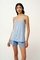 Dámské letní mikromodalové pyžamo VAMP na tenká stavitelná ramínka s kraťasy. Horní díl je zdobený modro-bílým vzorem. Kraťasy jsou jednobarevné, v pase do gumy.