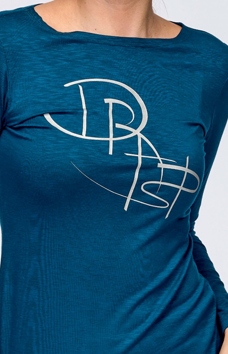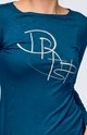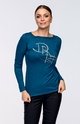 Dámské tričko DRAPS s dlouhým rukávem a lodičkový výstřihem. Přední díl je zdobený kontrastním potiskem.