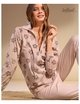 Dámský pohodlný rozepínací domácí komplet INFIORE - Ibiscus se stojáčkem. Horní díl zdobený tiskem květů je na zip, má kapsy na předním díle a rukávy ukončené do lemu. Kalhoty jsou jednobarevné, v pase do gumy a nohavice ukončené do lemu.