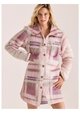 Dámský originální krátký hřejivý celorozepínací župan INFIORE - Super Madras s límečkem, knoflíčky a dvěma kapsami na prsou z mikroplyše pro vaše domácí pohodlí.