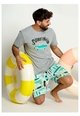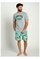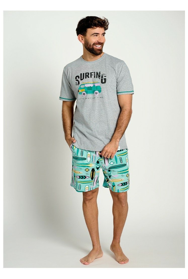 Pánské krátké bavlněné pyžamo MUYDEMI s kulatým výstřihem. Kraťasy mají v pase gumu a šňůrku ke stažení, 2 kapsy a jsou zdobené tiskem. Horní díl zdobí originální obrázek s motivem surfingu.